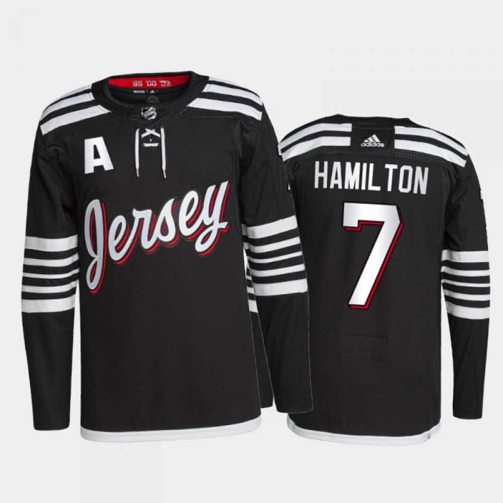 Men's New Jersey Devils #7 Dougie Hamilton 2021/22 Black Stitched Jersey