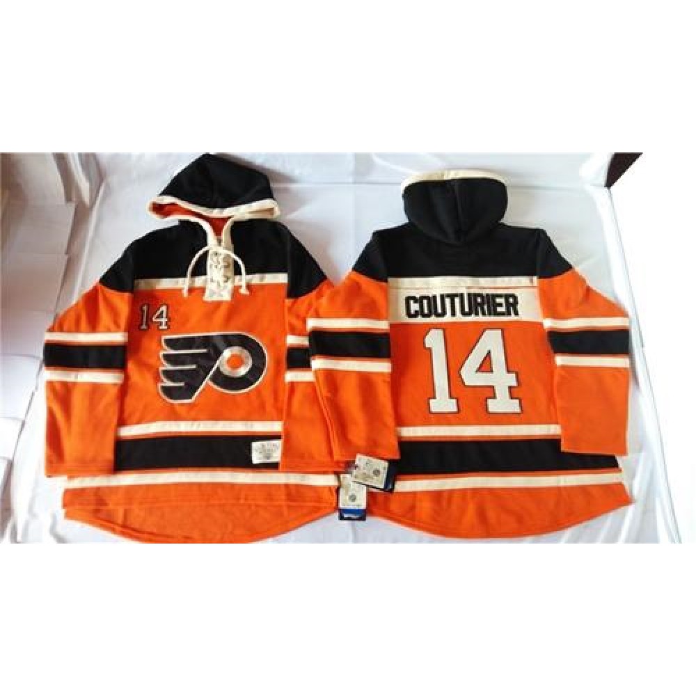 Flyers #14 Sean Couturier Orange Sawyer Hooded Sweatshirt Stitched NHL Jersey