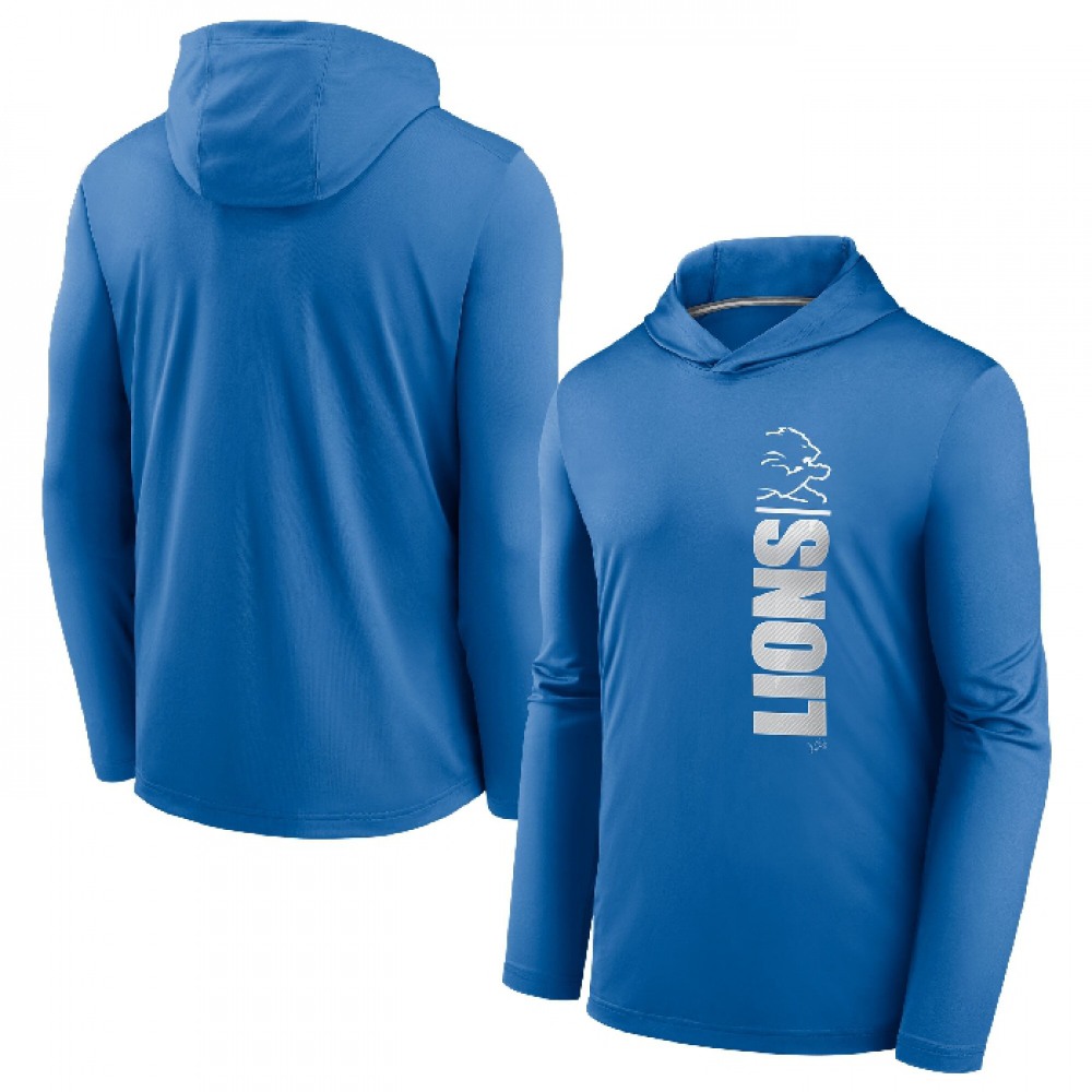 Men's Detroit Lions Blue Fan Gear Team Stack Hoodie Performance Long Sleeve T-Shirt