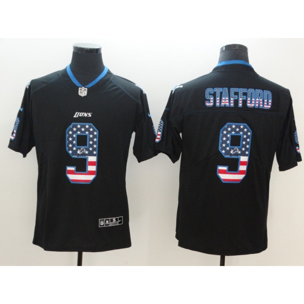 Men's Detroit Lions #9 Matthew Stafford Black 2018 USA Flag Color Rush Limited Fashion NFL Stitched Jersey