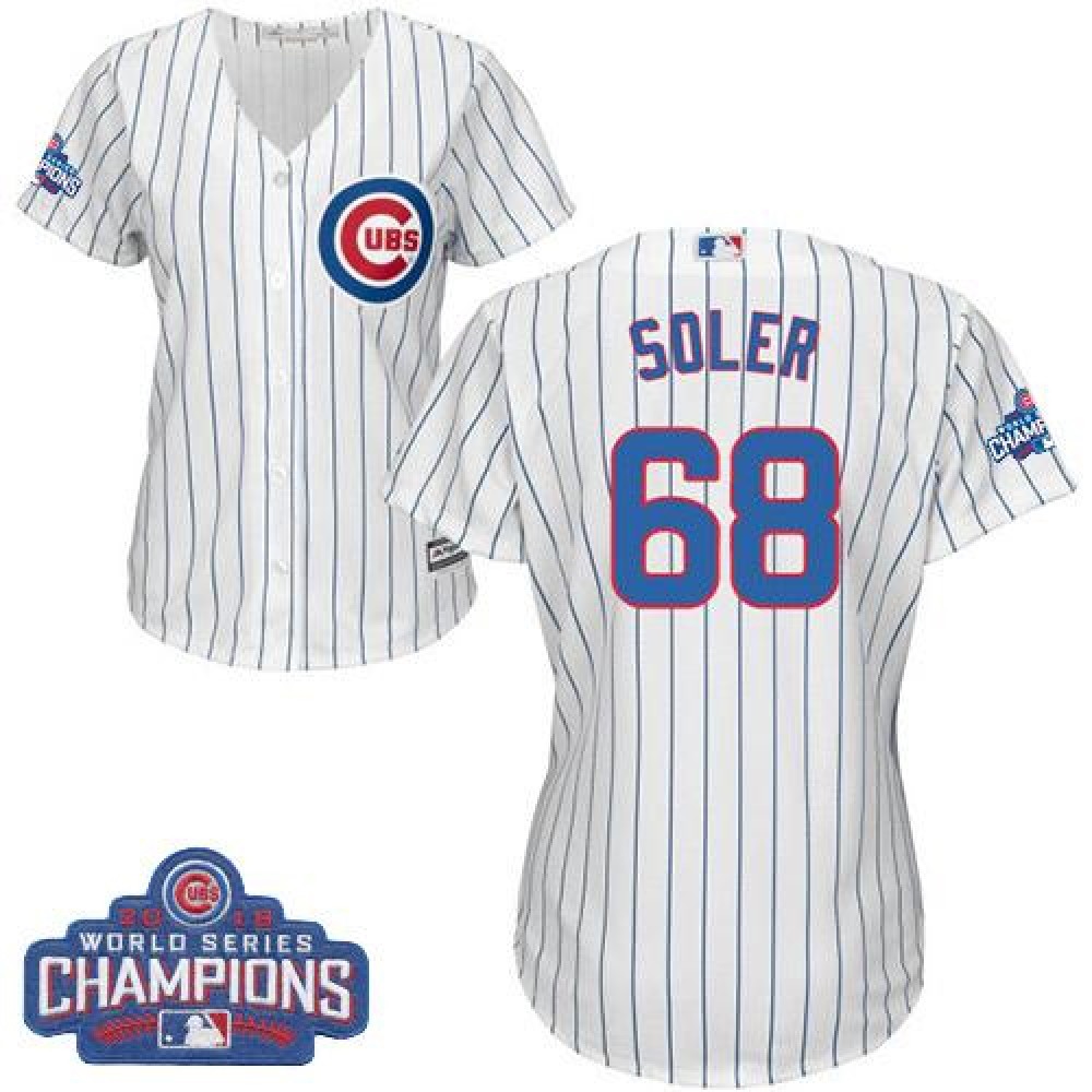 Cubs #68 Jorge Soler White(Blue Strip) Home 2016 World Series Champions Women's Stitched MLB Jersey