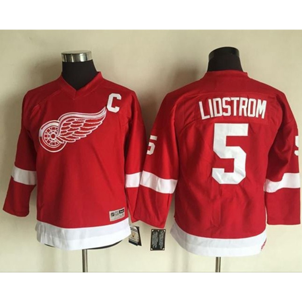 Red Wings #5 Nicklas Lidstrom Red CCM Throwback Stitched Youth NHL Jersey