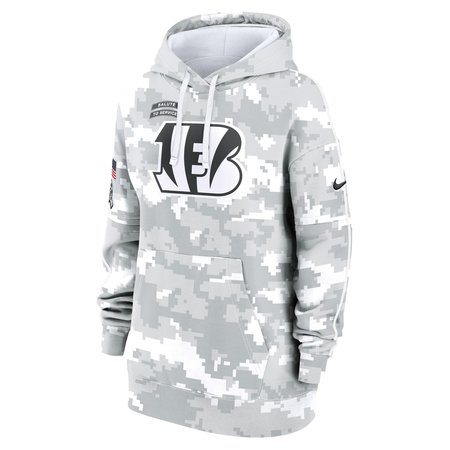 Women's Cincinnati Bengals Nike Arctic Camo 2024 Salute To Service Club Fleece Pullover Hoodie