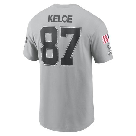 Men's Kansas City Chiefs Travis Kelce Nike Gray 2024 Salute To Service Name & Number T-Shirt