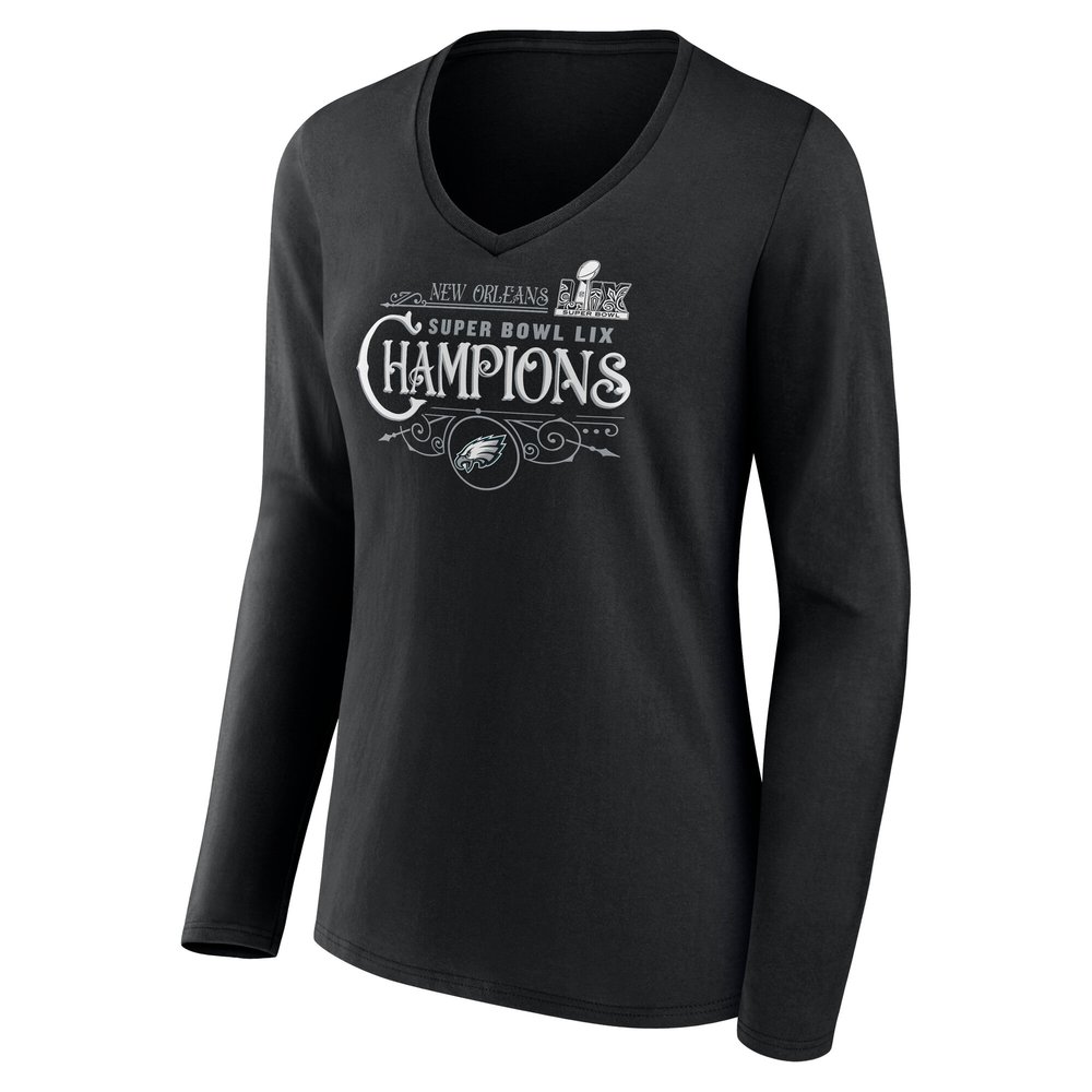 Women's Philadelphia Eagles Black Super Bowl LIX Champions Custom Name & Number Long Sleeve V-Neck T-Shirt